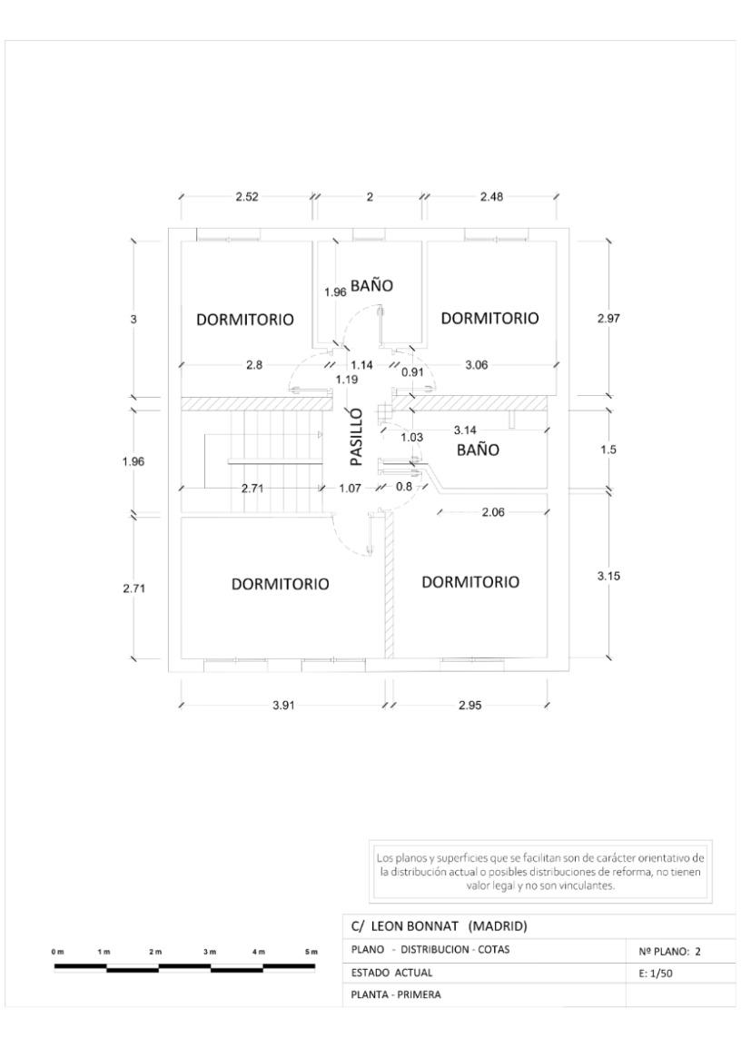 Compuesta de dos salones, cocina independiente, cinco amplios dormitorios, tres baños con plato de ducha (uno en planta baja y dos en la primera planta) y dos patios, uno en la parte delantera y otro en la trasera. Todas las estancias con ventanas al exterior.