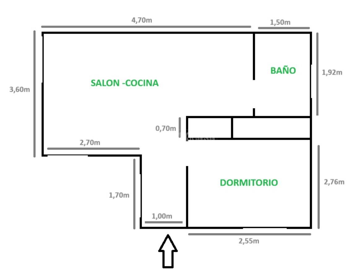 Compuesta de un salón con cocina americana totalmente equipada con electrodomésticos de alta calidad, un dormitorio con armario empotrado y un baño con plato de ducha. Todas las estancias con ventanas.